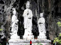 觀音洞,全國(guó)最大的洞中寺院,總體面積達(dá)2萬(wàn)多平方米,最大的特點(diǎn)就是所有的殿堂都是天然溶洞。人工雕刻佛像32尊,其中觀音像高達(dá)12.6米,主殿上有一天然神似觀音的鐘乳石,天然和人造的佛像渾為一體。天下名山僧占多,而天然溶洞寺院實(shí)屬罕見,其規(guī)模居全國(guó)之首。
