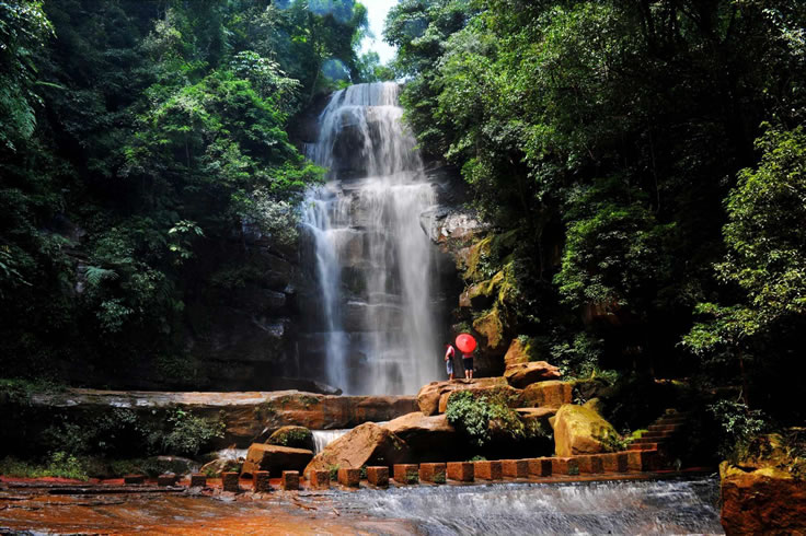 - 特色:以四級形態(tài)各異的瀑布群、萬畝竹海和丹霞地貌聞名,被譽為“萬竹之園”“沒有敗筆的景區(qū)”。