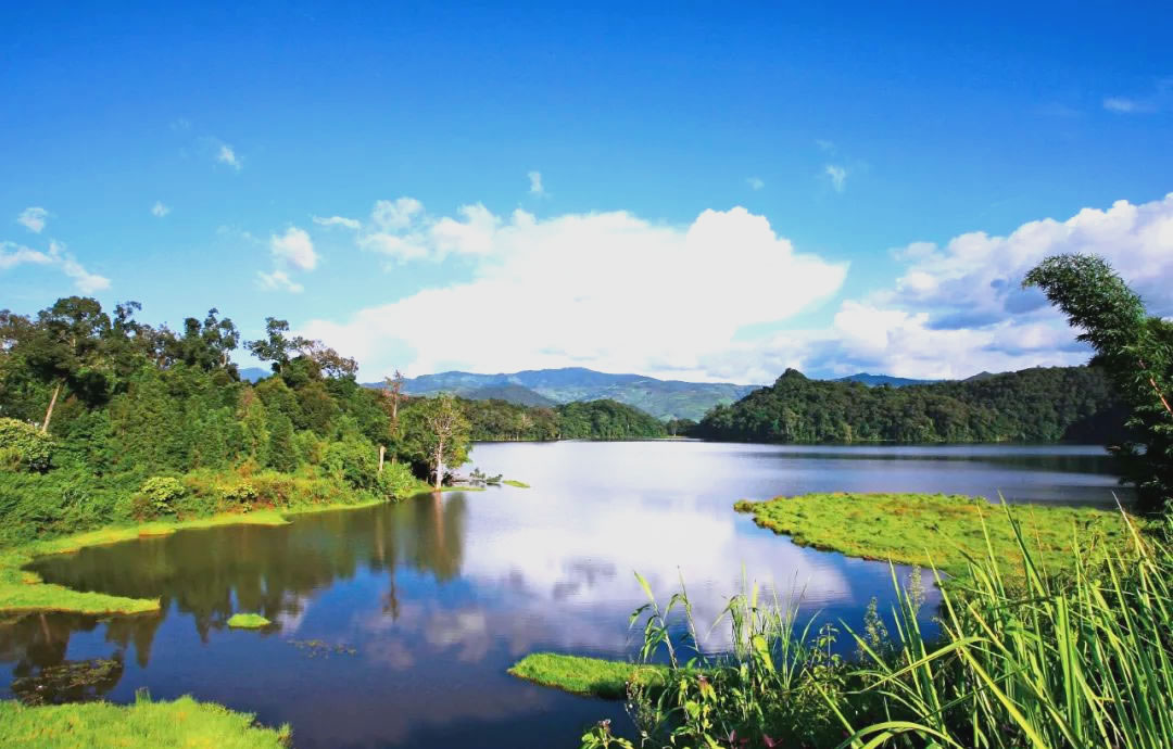 - 特色:熱帶雨林環(huán)繞的天然湖泊,水面46.7公頃,最深37.8米,傳說(shuō)與緬甸龍?zhí)?ldquo;夫妻相會(huì)”致水渾三天。