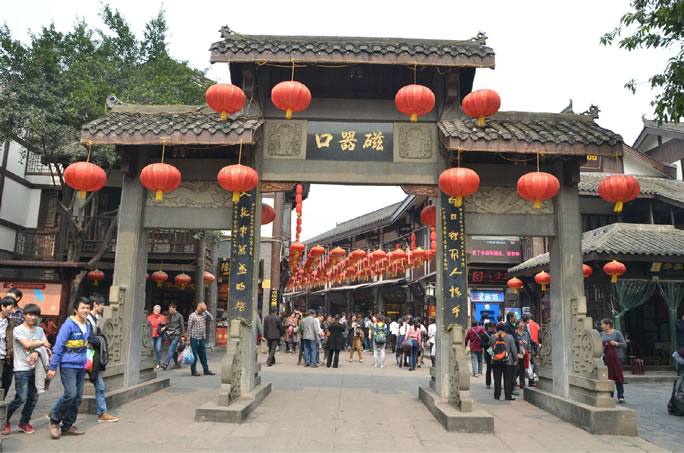 磁器口古鎮(zhèn),原名白巖場,也稱龍隱鎮(zhèn),地處重慶市沙坪壩區(qū)東北部,嘉陵江畔磁南街1號。北距沙坪壩中心5千米,重慶市中心14千米,南距石井坡3千米。古鎮(zhèn)總面積32.5萬平方米,景區(qū)核心面積分布于馬鞍山東側(cè)和東南側(cè),有14.3萬平方米。磁器口古鎮(zhèn),始建于宋真宗咸平年間,在清朝及民國時期得到飛速發(fā)展;1958年后,隨著水運交通逐漸蕭條,古鎮(zhèn)日漸衰落;20世紀(jì)末,憑借古鎮(zhèn)旅游潮流,磁器口古鎮(zhèn)又再次得到發(fā)展。它是重慶主城區(qū)內(nèi)唯一的規(guī)模最大、最具巴渝傳統(tǒng)民居、民俗、民風(fēng)特色的古鎮(zhèn)。古鎮(zhèn)上傳統(tǒng)的民居建筑、石梯街巷、遺存的寺廟宮觀,是巴渝山地民居建筑的天然博物館。磁器口古鎮(zhèn)依山而建,由山起城。以磁器口正街和橫街為骨架,42條巷道垂直于正街和橫街向馬鞍山脊和溪溝邊緣呈枝狀發(fā)展,形成特征明顯的樹枝狀平面格局。古鎮(zhèn)的主要景點有翰林院、鐘家院、寶善宮、寶輪寺、黃桷坪牌坊等。