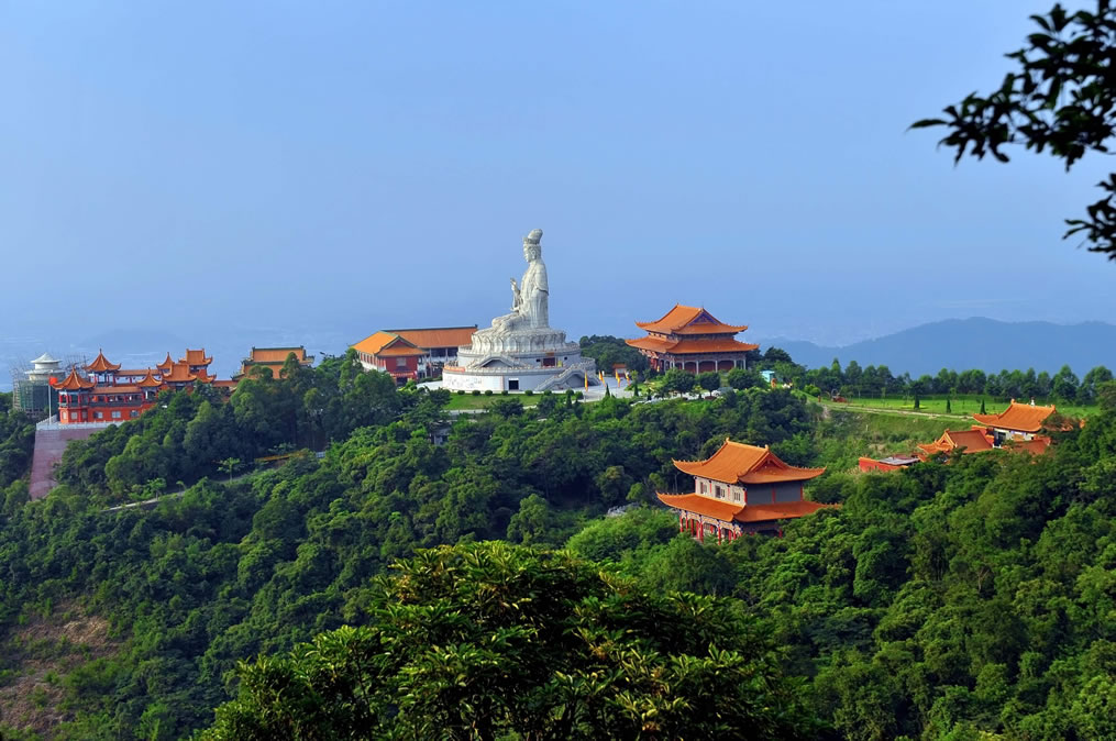廣東觀音山國家森林公園,位于廣東省東莞市樟木頭鎮(zhèn)筆架山路190號觀音山,地處珠江三角洲東南部,東莞市東部,樟木頭鎮(zhèn)中心邊緣,距鎮(zhèn)中心1.5千米,距離東莞市區(qū)大約40千米,總面積657.18公頃。廣東觀音山國家森林公園最高點為耀佛嶺,海拔566米,觀音山海拔488米。屬丘陵山地地貌。所在地區(qū)樟木頭鎮(zhèn)屬南亞熱帶海洋性季風(fēng)氣候區(qū)。森林覆蓋率達(dá)92%以上,常見植物種類有73科199種。其中屬國家保護(hù)的動植物22種,瀕危植物包括粘木、白桂木、蘇鐵蕨、土蠶霜、金茶花、野茶樹和野生龍眼等。有獸類、飛鳥類、甲殼類、昆蟲類等300多種動物。廣東觀音山國家森林公園內(nèi)建成了以正門樓、觀音廣場、觀世音菩薩法像、仙宮嶺、普渡溪、感恩湖、回音壁、怡心亭、慈云閣、先人石壘、古樹博物館、國際會展中心、仙泉游泳館等20余處景點;內(nèi)設(shè)6.8千米的吉祥路(佛光路),既可觀景也可休閑健身;還有飛天威亞、龍鳳天梯、冰雪樂園、山地越野車等娛樂項目,是親子家庭放松休閑、寓教于樂的自然課堂。