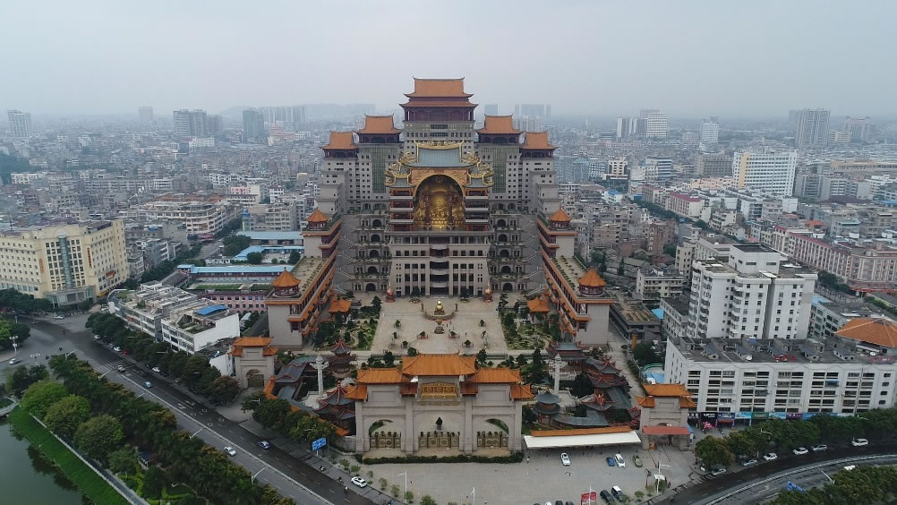 - 地理位置:廣西玉林市玉州區(qū)江濱路461號(hào),國(guó)家AAAA級(jí)景區(qū),占地70畝,建筑面積14萬(wàn)平方米,主樓21層高108米,被譽(yù)為“玉林版布達(dá)拉宮”,集雕塑藝術(shù)、民俗文化、珍寶展示于一體。