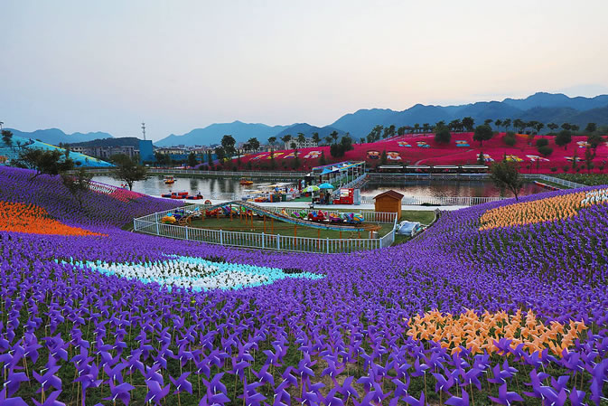 - 薰衣草花海:400畝梯田式種植,5-6月、9-10月為盛花期,紫色花海與格;ā⒎埙觳萁豢,形成“紫色地毯”景觀,適合航拍及婚紗攝影。