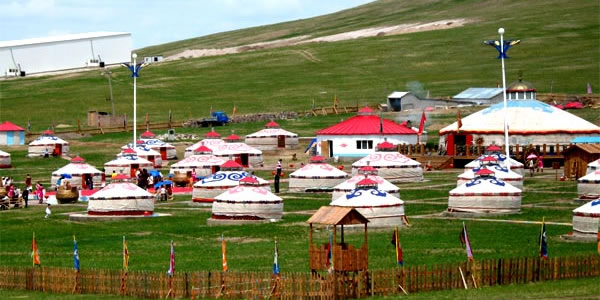 鐵木真大汗行營(yíng) 鐵木真大汗行營(yíng)是以蒙古游牧部落為景觀的旅游景點(diǎn),也是呼倫貝爾境內(nèi)最大的蒙古部落,位于東湖區(qū)達(dá)永山四季滑雪館東側(cè),占地面積10萬(wàn)平方米。這里周邊是豐美的天然牧場(chǎng),歷史上許多游牧民族都曾在這里游牧,繁衍生息。12世紀(jì)末至13世紀(jì)初,一代天驕成吉思汗曾在今東湖區(qū)二子湖畔訓(xùn)練兵馬,打敗了世仇塔塔爾部。鐵木真大汗行營(yíng)景點(diǎn)的設(shè)置,就是當(dāng)年成吉思汗行帳的縮影和再現(xiàn)。關(guān)于鐵木真大汗行營(yíng),當(dāng)?shù)剡流傳著一個(gè)古老的故事。