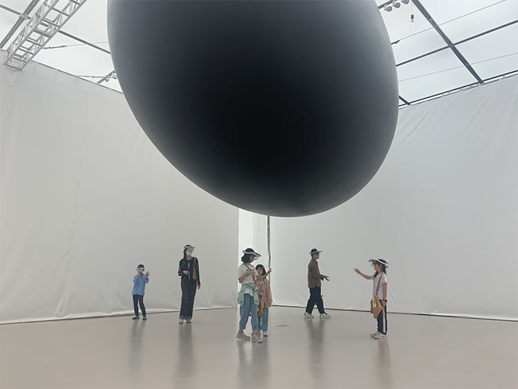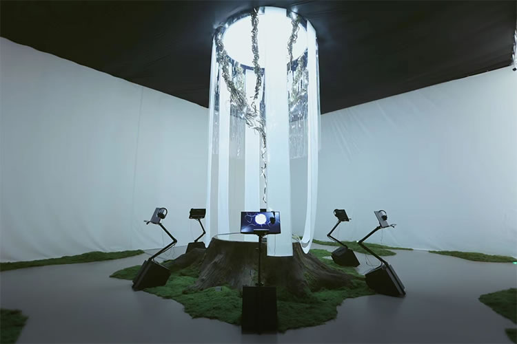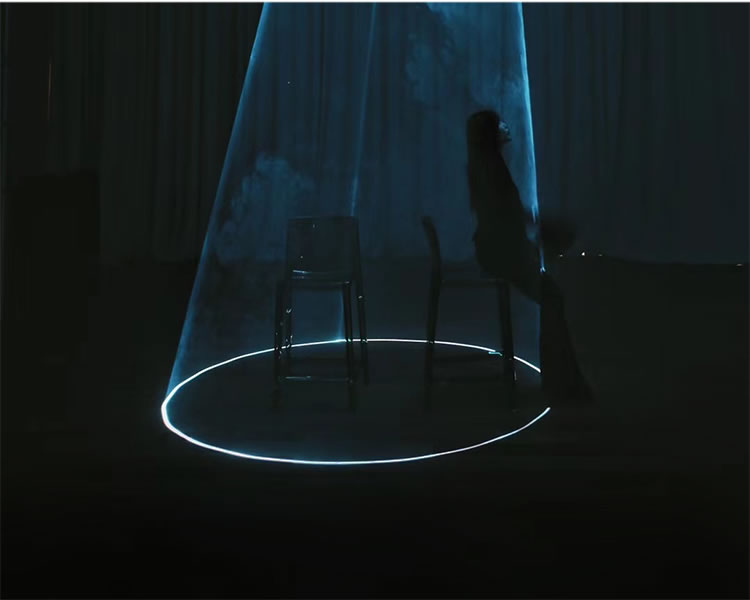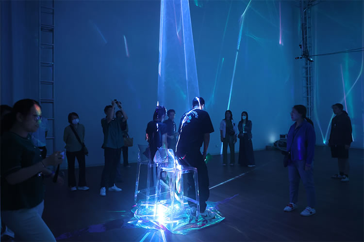 該展項(xiàng)(新月空間),通過(guò)光幕隔離不同觀眾