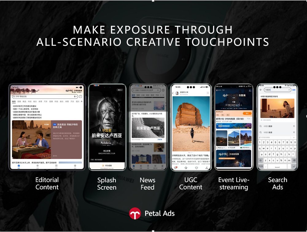 在與沙特旅游局的合作中,沙特旅游局與鯨鴻動能打造“旅尋計劃”IP,通過策劃一套全場景、全鏈路的創(chuàng)新數(shù)字化營銷方案,多維度揭秘了沙特這座神秘古國與自然、人文交織的獨特之美。從全場景資源線上展示沙特風(fēng)光,到華為旗艦店的沙特文化體驗活動,再到“沙特尋秘啟程影像大賽”, 鯨鴻動能從線上到線下,從用戶認(rèn)知到品牌維度,巧妙地將沙特旅游與華為的產(chǎn)品和服務(wù)相結(jié)合,有效觸達(dá)龐大的華為用戶群體,讓大量中國消費者看見多彩沙特,也讓沙特成為中國游客旅游目的地中的“新貴”,活動落地期間,前往沙特的華為用戶實現(xiàn)大幅增長。