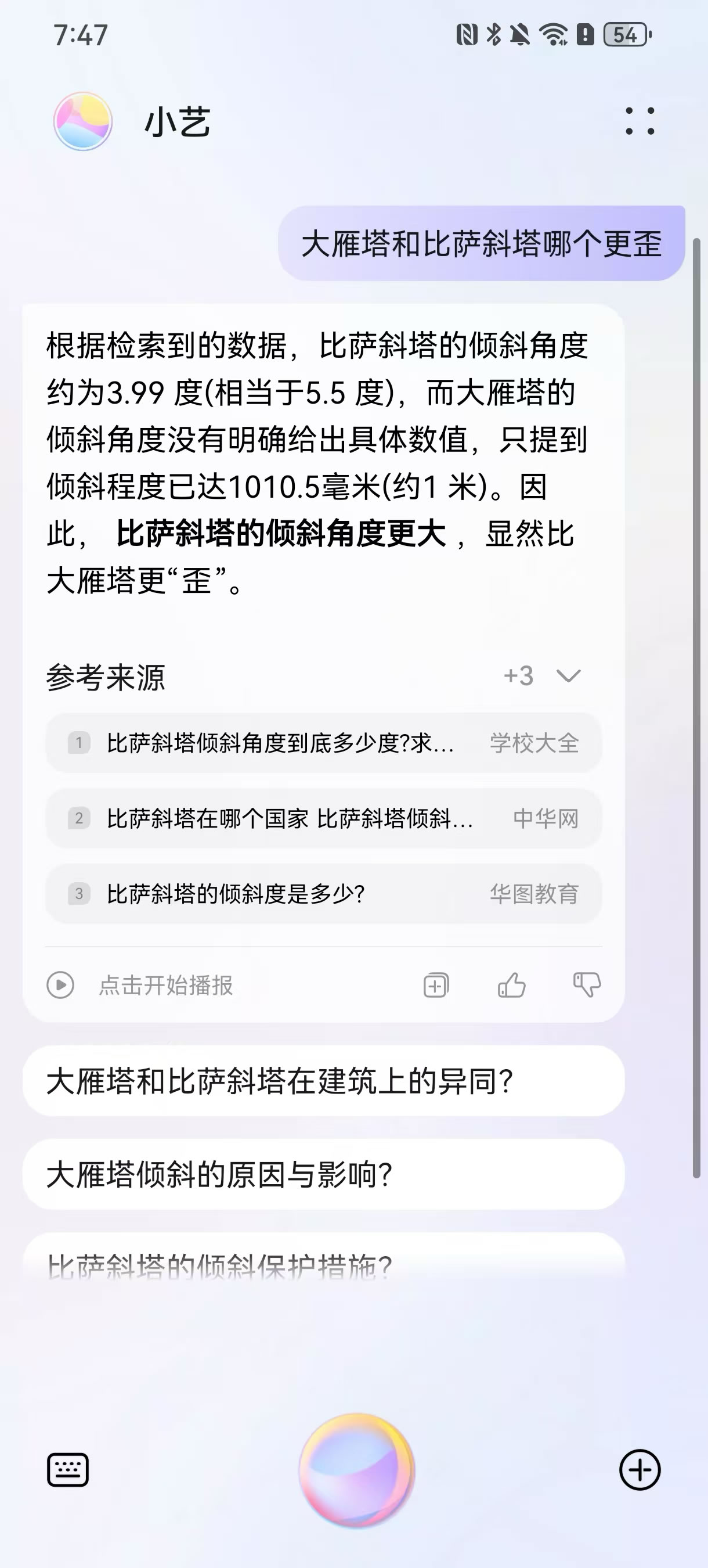 確定好目的地之后,到底怎么玩?對大多數人來說,既要規(guī)劃詳細、又要細節(jié)不出紕漏的“完美旅行攻略”非常費時費力。而小藝可以從特色景點、住宿、餐飲、注意事項等多個維度出發(fā),結合用戶確定的旅行目的地,為你解答各種旅行知識,堪稱旅行界的百科全書。用戶只需長按華為手機電源鍵或者對手機說“小藝小藝”即可喚醒小藝,不論是詢問當地的人文知識、歷史典故,還是推薦熱門景點、美食小吃,小藝都能對答如流,幫助大家更快速了解目的地的相關信息。比如你可以直接問它“為什么景德鎮(zhèn)的瓷器很出名”、大雁塔和比薩斜塔哪個更歪” “為什么很多人喝不慣北京豆汁兒”,通過各種問題逐漸了解到目的地的各種信息,幫助提升旅行體驗。
