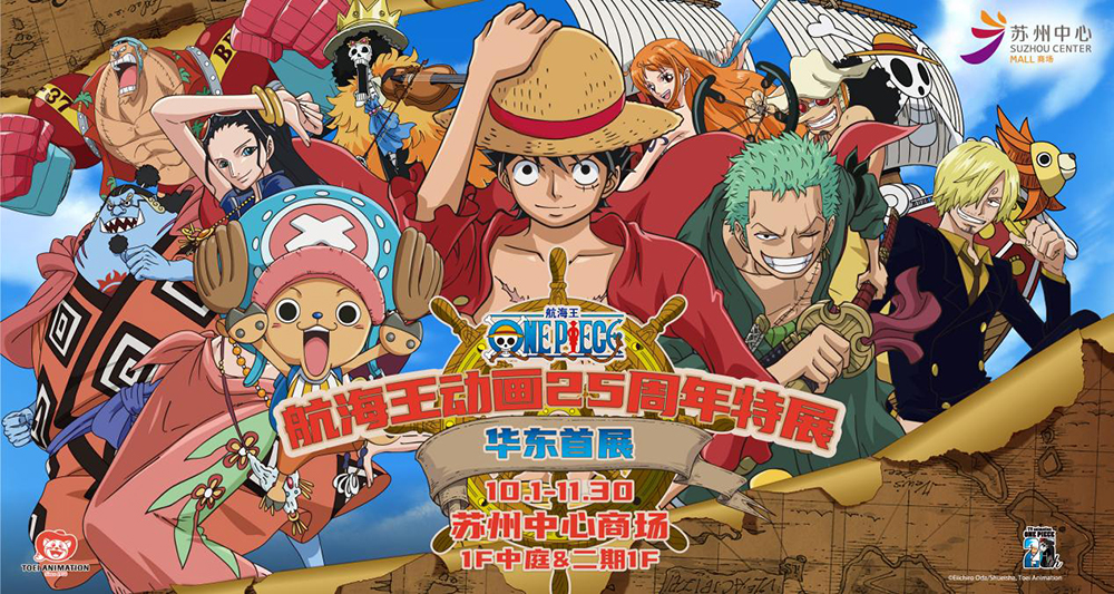 本次展覽集結(jié)了從東海篇到艾格赫德篇的13大篇章,各大勢力和人氣角色順著劇情時(shí)間線悉數(shù)登場,多場經(jīng)典戰(zhàn)斗現(xiàn)場還原動畫中的高燃時(shí)刻。場內(nèi)不但有奈美的測量室和山智的餐廳供顧客沉浸式參觀,還特設(shè)東映動畫航海王25周年展區(qū),將角色設(shè)定圖、懸賞令等動畫細(xì)節(jié)一次性大公開。更有高達(dá)7米的巨型路飛氣模震撼亮相。草帽一伙10位成員1:1等身塑像空降,排場十足,開啟超多人合影模式。除了特展之外,期間還有航海王快閃店,匯集大量毛絨玩具、徽章、亞克力商品等限時(shí)原創(chuàng)商品。歡迎您來到蘇州中心商場與我們一起感受航海王的魅力!