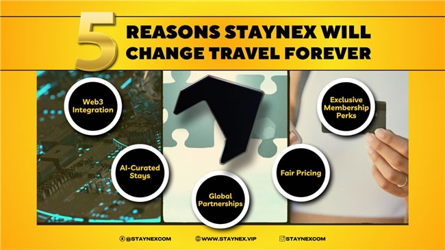 作為旅游行業(yè)的先驅(qū),Staynex 將數(shù)字技術(shù)與現(xiàn)實(shí)世界的專業(yè)服務(wù)無縫融合,重新定義探索世界的方式。通過獨(dú)特的 Web2.5 戰(zhàn)略,打造了獨(dú)家合作伙伴關(guān)系與企業(yè)聯(lián)盟,為酒店及度假村預(yù)訂提供無與倫比的價值與優(yōu)惠。 整合了 Web3 技術(shù)和人工智能,具有真實(shí)世界資產(chǎn)(RWA)層。通過 “權(quán)益池”(Stake & Claim Pool)的經(jīng)濟(jì)收益模式。全球 250 多萬家酒店和服務(wù)式公寓達(dá)成合作,提供專享價格。