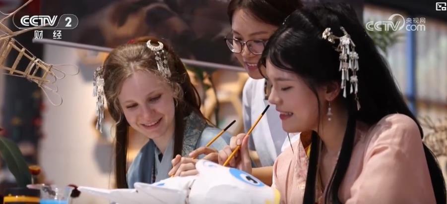 在安徽黃山的西溪南村,一批外國游客也正在體驗漢服妝造,當(dāng)?shù)剡舉行了體驗非遺魚燈的制作活動,介紹魚燈的歷史傳說、傳承發(fā)展、制作工藝等知識。