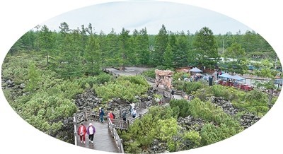 游客在內(nèi)蒙古阿爾山國(guó)家森林公園石塘林景區(qū)游玩。