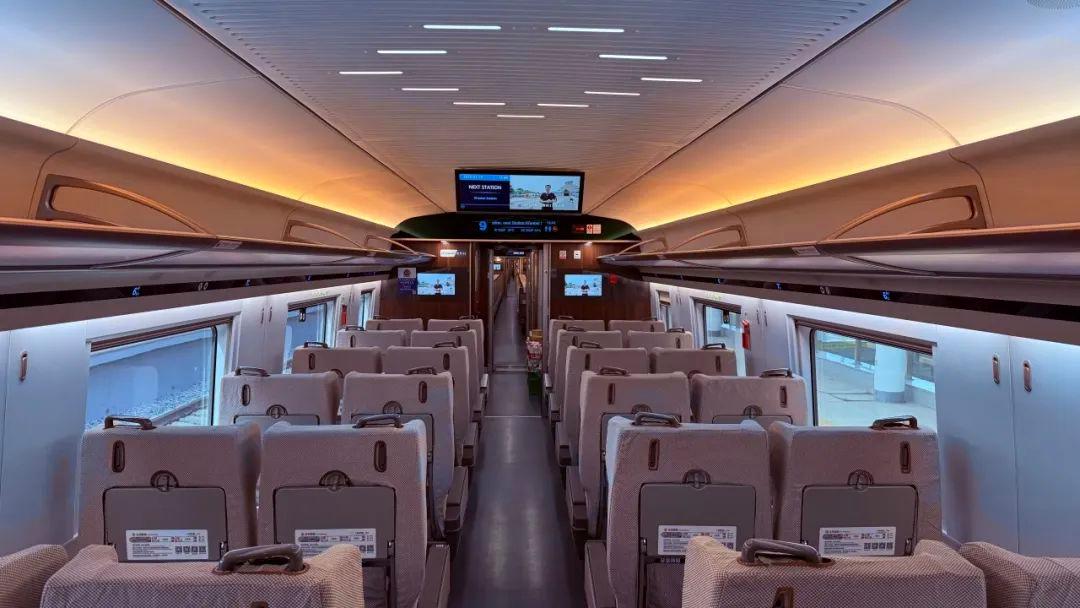 以復(fù)興號(hào)智能動(dòng)車組為例:二等座通常采用“3+2”式排列,從左到右依次是ABCDF,A和F靠窗,C和D靠過道,B座位于A和C座位中間。
