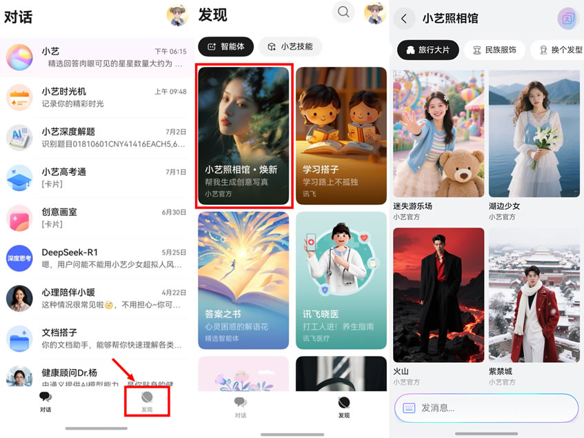 如果沒拍到滿意的照片也沒關(guān)系,在小藝照相館找回遺失的美好。進(jìn)入小藝App的發(fā)現(xiàn)頁,在智能體市場找到小藝照相館Agent,挑選自己喜歡的模板并上傳照片,即刻生成藝術(shù)風(fēng)格類寫真,實現(xiàn)像素級面部特征遷移,效果堪比專業(yè)攝影棚精修大片。
