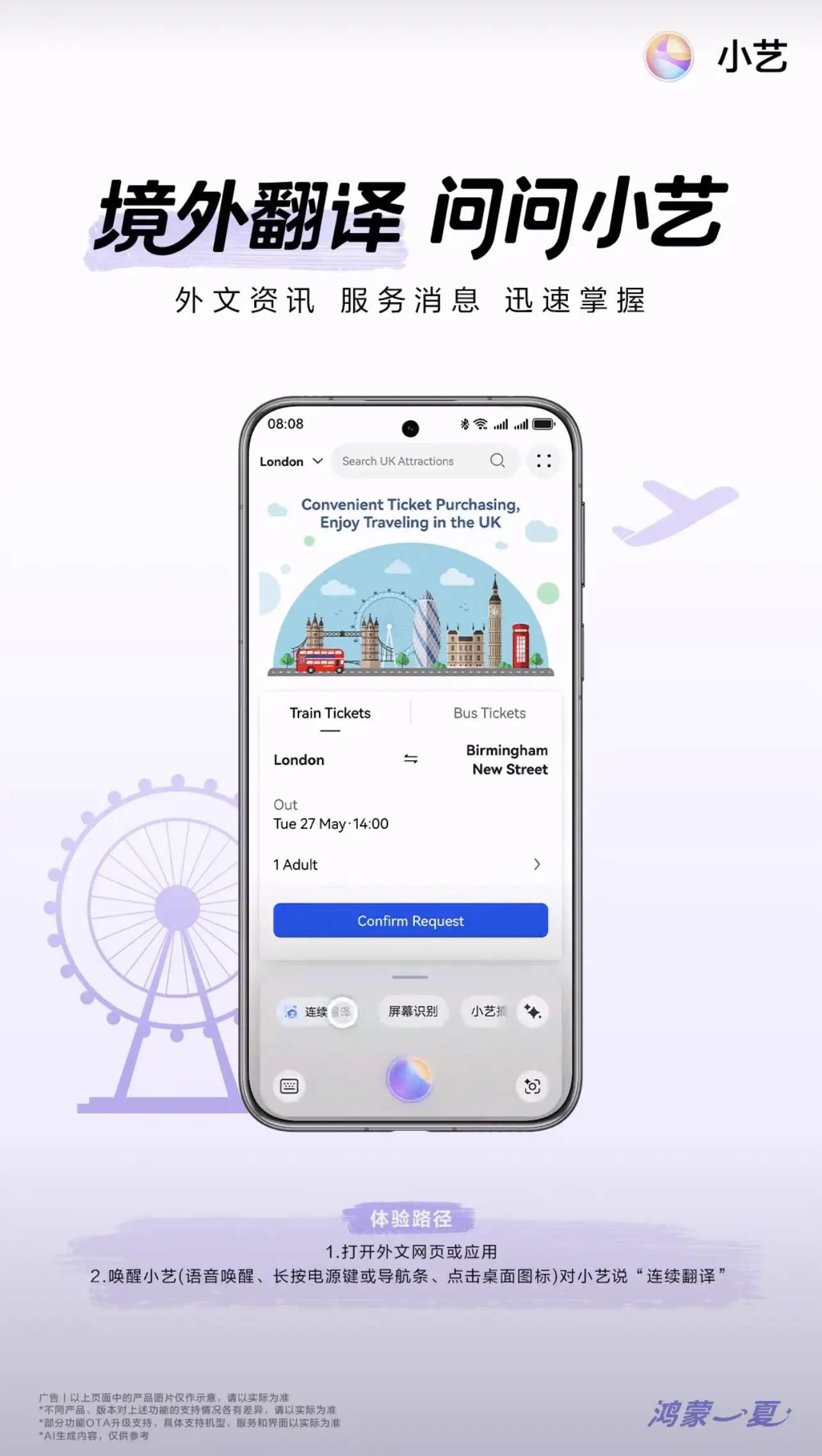 今年暑期,“鴻蒙一夏”系列活動開啟,全方位為用戶出境游助力。用戶可以在華為瀏覽器找到出行靈感敲定心動目的地,用華為天際通9.9元全球流量隨心用解決流量煩惱,用花瓣地圖打卡當(dāng)?shù)靥厣有秘密武器小藝翻譯助用戶打破語言壁壘,一站式解決出境游核心痛點,時刻暢享絲滑旅途。