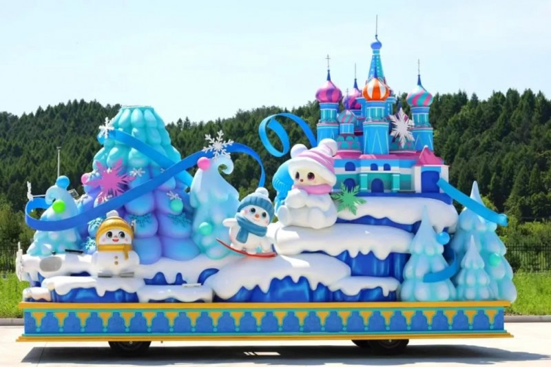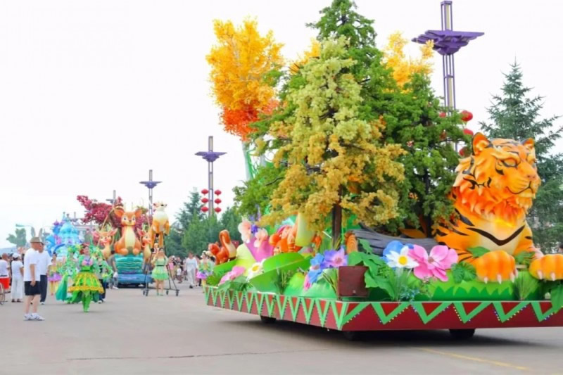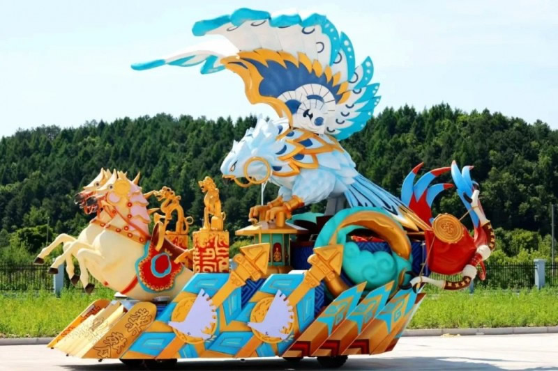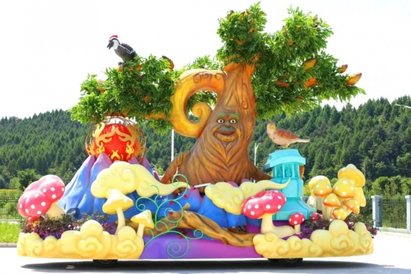 花車(chē)設(shè)計(jì)不僅注重視覺(jué)沖擊力,更融入動(dòng)態(tài)特效:虎頭擺動(dòng)、翅膀扇動(dòng)、雪花機(jī)噴灑等細(xì)節(jié),讓靜態(tài)的造型煥發(fā)生命力。夜幕降臨時(shí),花車(chē)更以夜光效果點(diǎn)亮林海,為觀眾呈現(xiàn)一場(chǎng)光影交織的奇幻盛宴。