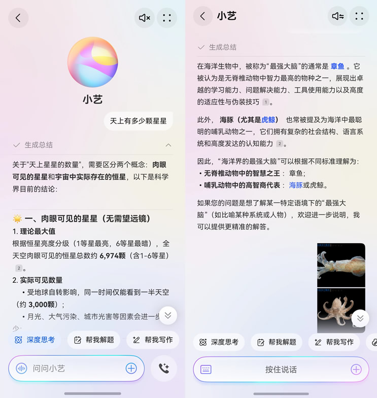 如果是親子游,逛海洋館或博物館時也可以拍照拖給小藝或者圈選問問小藝,和孩子一起探索“海洋知識”、“文物歷史”等知識,不失為一種寓教于樂的好辦法,讓出行更有意義。旅游途中不用擔心小朋友問出“天上有多少顆星星?”“海水為什么是咸的?”“動物界的'最強大腦'?”等等十萬個為什么。