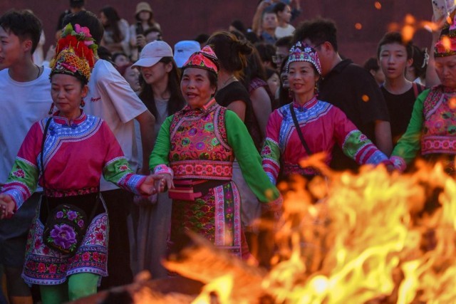 “不用懂專業(yè)舞步,跟著大家一起,怎么開心怎么跳!” 在大理州巍山縣拱辰樓廣場,躍動的篝火映紅了古老的城墻,來自西安的游客劉欣已融入當?shù)貞c;鸢压(jié)的彝族打歌隊伍中。“打歌隊員帶領大家圍著篝火唱跳,簡直太開心了!”她說。