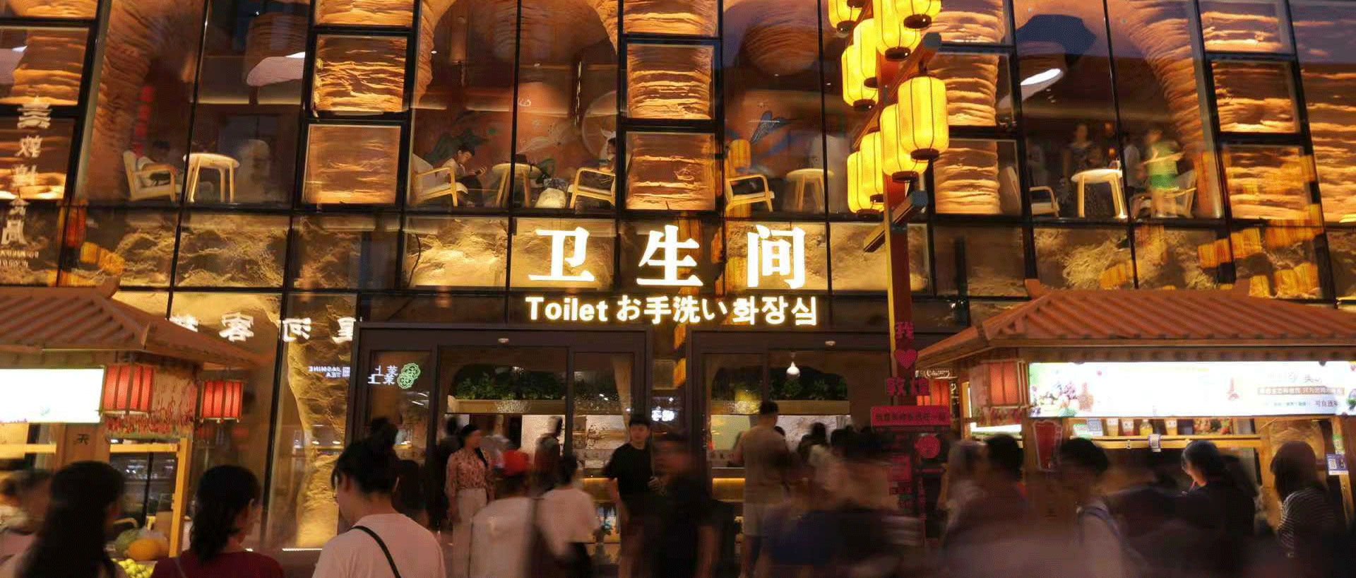 來自上海的游客說:“我本來是來逛夜市的,進來之后才發(fā)現(xiàn)有衛(wèi)生間,做的跟景點很像,壁畫的元素非常有感覺,而且也很干凈,讓人覺得非常有特點。其實最讓我意外的就是我如果在這轉累了,順便來衛(wèi)生間,里面有可以坐著休息的地方,還能看一些關于敦煌的小故事。我覺得這個體驗是目前我在其他景點還沒有發(fā)現(xiàn)的。”