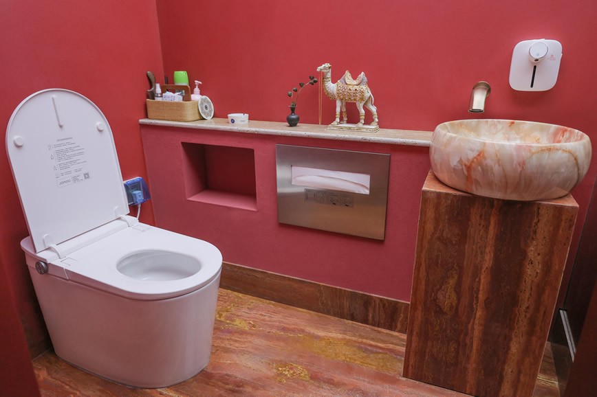 此外,九牧創(chuàng)新性地打造近千平米的“全齡友好型人文關懷樞紐”:母嬰群體專享獨立哺育室,配備抗菌護理臺、兒童安全座椅及自清潔穹頂系統(tǒng),打造潔凈溫馨的親子空間;長者及殘障人士無障礙專區(qū),設置低位感應洗手池、防滑安全扶手及智能語音導航,實現(xiàn)自主無憂通行;還可通過潮汐衛(wèi)生間動態(tài)調節(jié)廁位資源,解決代際照護如廁難題;全齡游客共享多功能服務島——休憩區(qū)配備茶飲自助機、行李寄存柜及文化展陳,滿足從嬰幼兒到銀發(fā)族的多元需求。