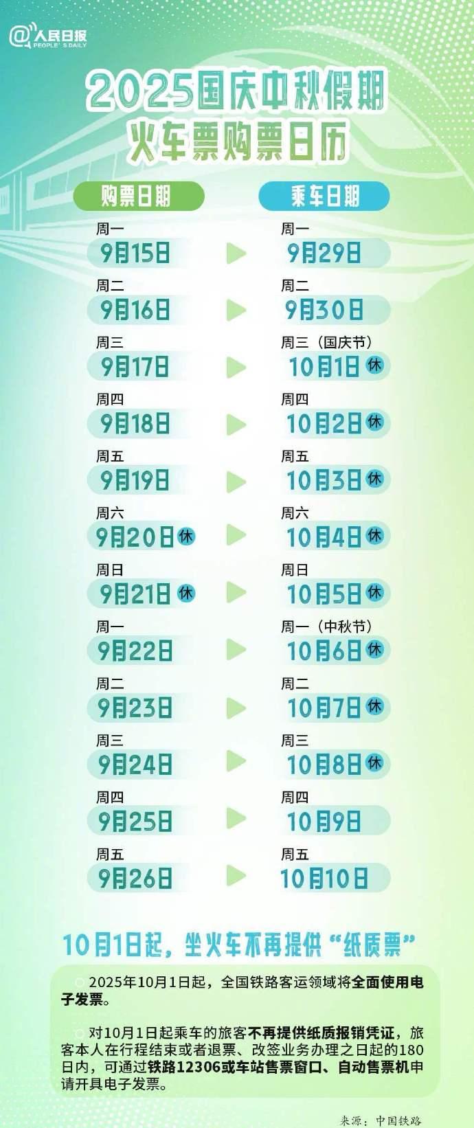 國(guó)慶中秋購票4個(gè)關(guān)鍵時(shí)間: