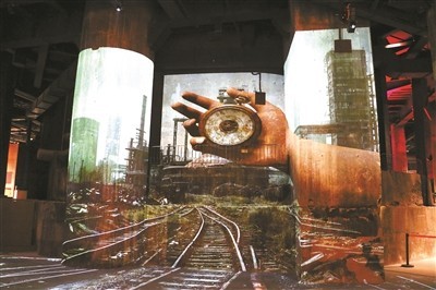 走進(jìn)三高爐,以爐芯為載體放映的數(shù)字片《致敬鋼鐵》,呈現(xiàn)出獨(dú)特的觀影效果。爐芯、墻壁、地面,瞬間變?yōu)槠聊,觀眾可360度沉浸在鋼鐵故事中,了解北京乃至中國鋼鐵工業(yè)發(fā)展有重要貢獻(xiàn)的“功勛高爐”的歷史。