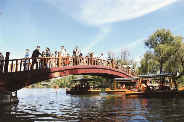 為保障游客游玩體驗(yàn),我市針對(duì)“雙節(jié)”旅游高峰,承德避暑山莊景區(qū)制定專項(xiàng)工作方案與預(yù)案,在麗正門加裝引導(dǎo)護(hù)欄保障游客有序入園,在正宮區(qū)、湖區(qū)的道路狹窄處、橋梁處增加疏導(dǎo)人員,通過監(jiān)控關(guān)注煙雨樓、金山、熱河泉等景點(diǎn)客流,人員聚集時(shí)即刻疏導(dǎo)、廣播分流;同時(shí)對(duì)一線工作人員開展服務(wù)禮儀培訓(xùn),推進(jìn)“笑臉行動(dòng)”,全面維修維護(hù)旅游服務(wù)設(shè)施、清掃環(huán)境衛(wèi)生,并調(diào)配全系統(tǒng)兩級(jí)機(jī)關(guān)人員補(bǔ)充到一線崗位,用細(xì)致服務(wù)讓游客游得舒心、玩得安心。