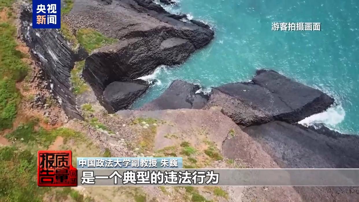 中國地質(zhì)大學(北京)地球科學與資源學院教授 張緒教:游客上島以后,他們攀爬到柱狀節(jié)理上邊,對柱狀玄武巖造成破壞,這種物理破壞是不可逆的。