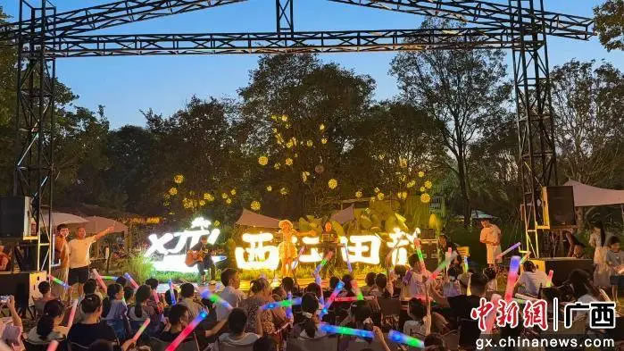 西江田韻休閑營(yíng)地的草坪音樂(lè)會(huì)人氣爆棚。每日傍晚,草坪上坐滿(mǎn)游客,主辦方邀請(qǐng)多風(fēng)格樂(lè)隊(duì)、歌手現(xiàn)場(chǎng)演出,動(dòng)感流行曲與舒緩民謠交替響起,旋律在田野間回蕩。游客或鋪野餐墊圍坐,或站在草坪邊緣揮舞熒光棒,隨節(jié)奏輕搖,享受獨(dú)特音樂(lè)盛宴。
