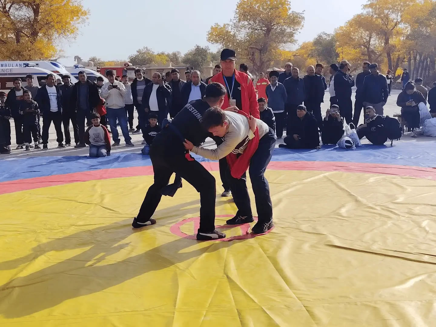 活動當(dāng)天,且力西比賽現(xiàn)場熱鬧非凡,眾多體育愛好者與游客紛紛圍攏,目光緊盯著賽場。隨著裁判一聲哨響,摔跤手們迅速進(jìn)入狀態(tài),或蹲下身子穩(wěn)步試探,或主動出擊鎖住對方肩膀。抱腰、絆腿、過肩摔……一系列技巧動作如行云流水,剛勁有力又不失靈活。每當(dāng)有精彩對決上演,場邊便爆發(fā)出陣陣喝彩與加油聲,不少觀眾舉起手機,記錄下這難忘的瞬間。