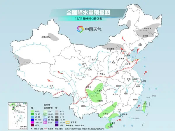 中國(guó)天氣網(wǎng)訊 未來(lái)三天(12月1日至3日),受寒潮和補(bǔ)充冷空氣影響,我國(guó)大部氣溫下降,北方多地降溫明顯,局地降幅可達(dá)14至16℃,并伴有大風(fēng),公眾請(qǐng)注意防風(fēng)保暖。同時(shí),大部地區(qū)雨雪稀少,天干物燥,南方雨水明天短暫增多,干燥暫時(shí)緩解。