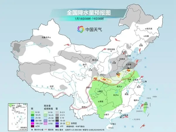 今天,雨雪將繼續(xù)向南大幅擴(kuò)張;明天起,此輪雨雪進(jìn)入鼎盛時(shí)段。未來(lái)四天,中東部地區(qū)自北向南將先后出現(xiàn)大范圍雨雪天氣過(guò)程,秦嶺-淮河以南地區(qū)降水相態(tài)復(fù)雜,有雨雪及凍雨的轉(zhuǎn)換。西北地區(qū)東部、華北中南部、黃淮、江漢、江淮西部、江南北部等地有中到大雪或雨夾雪,其中,陜西南部、河南中南部、湖北西部、湖南北部、安徽西部等地部分地區(qū)有暴雪,河南中南部、湖北西部、湖南、貴州、重慶東北部等地部分地區(qū)有凍雨,西南地區(qū)東部、江南南部、華南西部等地有小雨。