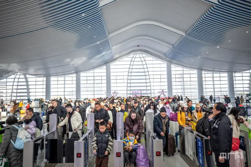 面對激增客流,鐵路部門動態(tài)優(yōu)化列車開行方案,日均開行旅客列車超470列,累計增開臨客列車340列,并在客流高峰期開行夜間動車26列,暢通省內(nèi)外客流通道。2月22日至24日迎來返程客流高峰,三天日均發(fā)送旅客51.6萬人次,其中2月23日發(fā)送旅客達(dá)53.9萬人次,創(chuàng)假期單日發(fā)送量新高。
