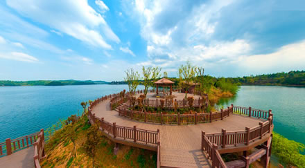 仙海親水棧道,臨湖而建,采用木、石等生態(tài)材質,融湖光山色于一體。起于雷耀酒店,經(jīng)水庫大壩,沿湖畔蜿蜒曲折,止于長虹研發(fā)園。首期全長約6公里,遠看近看,宛如一條蛟龍,行走其間,宛如蛟龍入海。