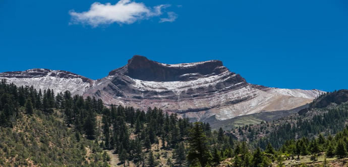 珠姆馬鞍山屹立在洛隆縣東大門,傳說,此山是格薩爾王王妃--珠姆的坐騎幻化而成,所以形似駿馬,而其馬背上的馬鞍(山峰的形狀)既如同能工巧匠精心雕刻出來的馬鞍,又像畫家們畫出來的真實(shí)馬鞍。其周圍山的形狀猶如珠姆王妃用過的帳篷、燒牛奶和奶渣的銅鍋、羊圈等,妙不可言。