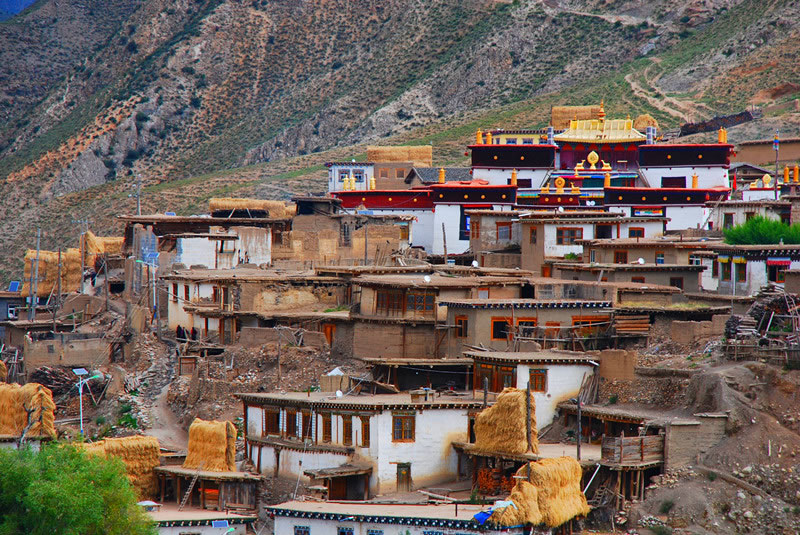 喪葬 一般為天葬,死者的家屬、兒女、親戚都不送葬,由天葬師為葬者修容整裝后抬上天葬臺,將其分割后喂鷹。
